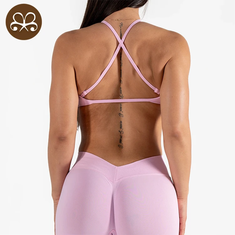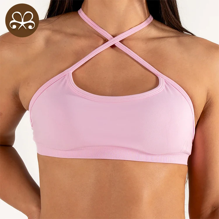 YISHENHON OEM/ODM Custom Workout Halter Scrunch Sports Bra Women Girls Stretchy Compression Quick Dry Padded Sexy Pants Polybag