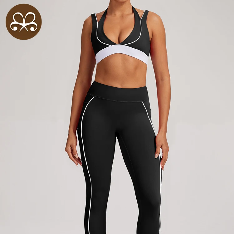 YISHENHON OEM/ODM Custom Workout Halter Scrunch Sports Bra Women Girls Stretchy Compression Quick Dry Padded Sexy Pants Polybag