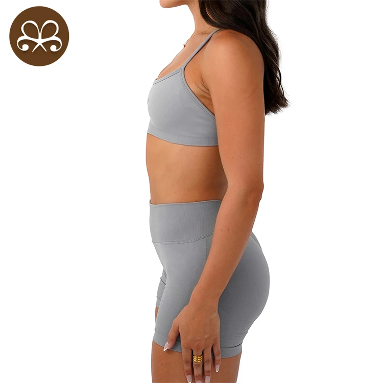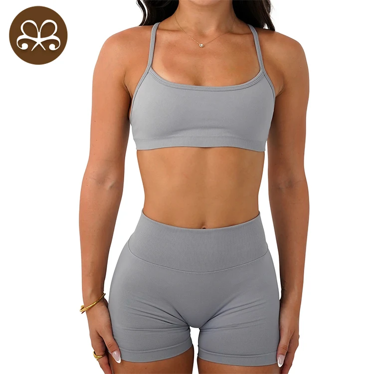 YISHENHON OEM/ODM Custom Workout Halter Scrunch Sports Bra Women Girls Stretchy Compression Quick Dry Padded Sexy Pants Polybag