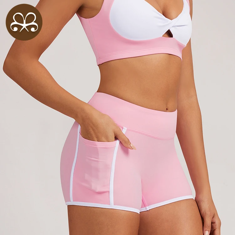 High Waisted Color Block Yoga Shorts Butt Lifting High Elasticity Quick-Dry Breathable for Running Gym and Fitnessg