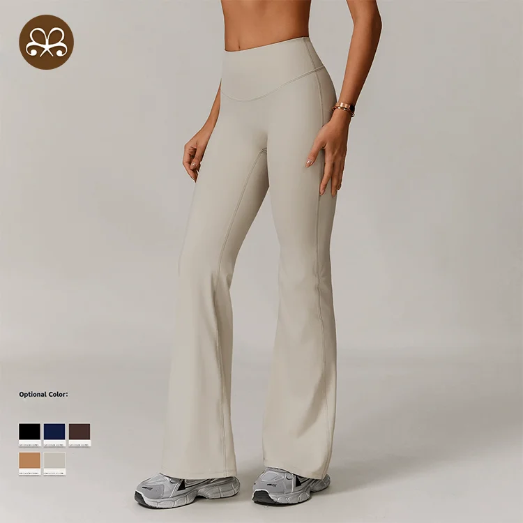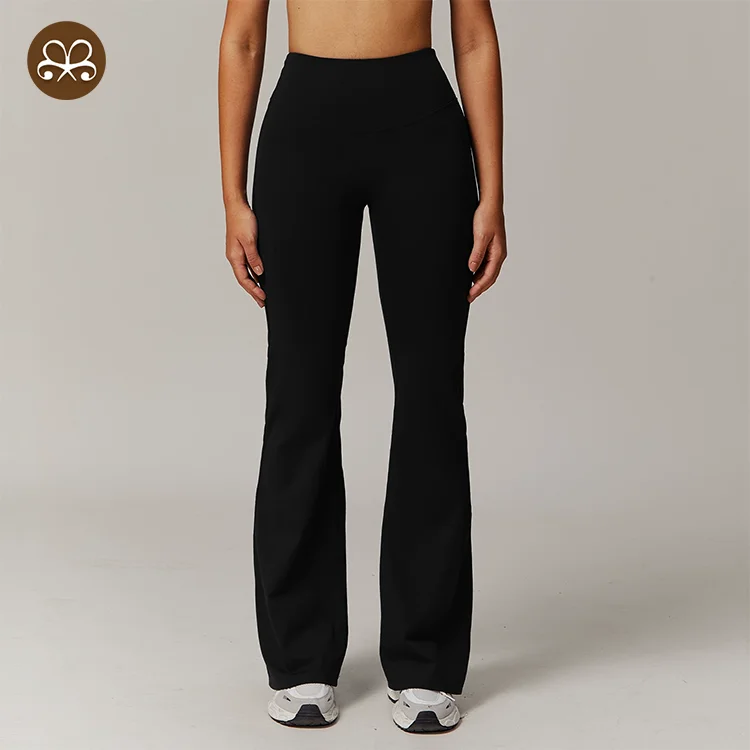 YISHENHON High Quality Gym Yoga Flare Leggings Hot Selling High-Waisted Wide Leg Pants for Women Solid Casual Sport Running