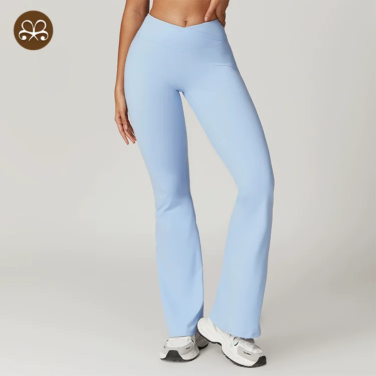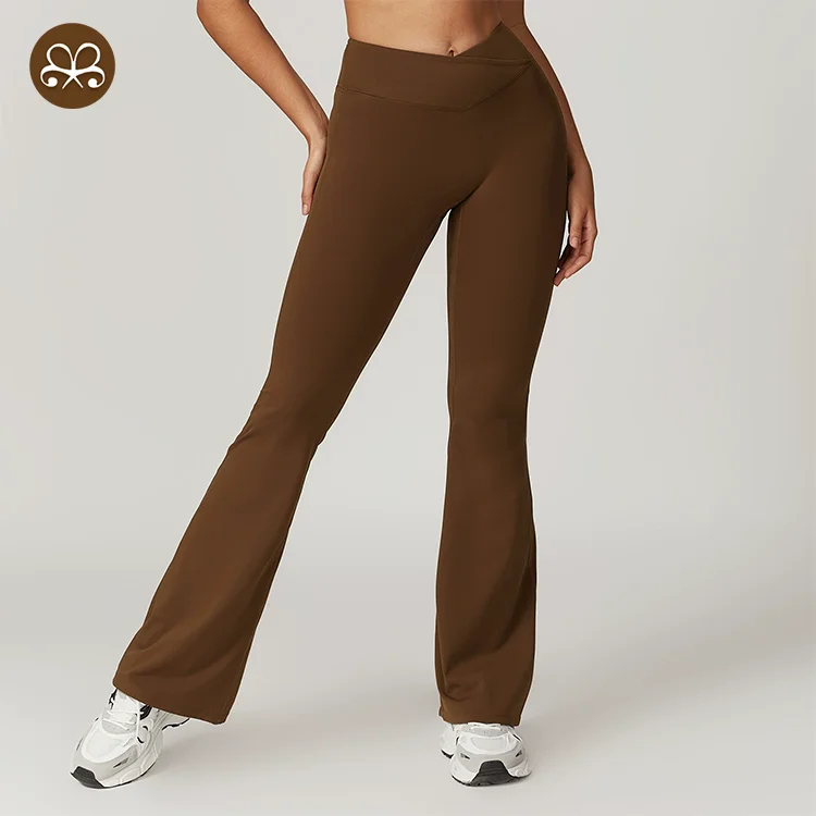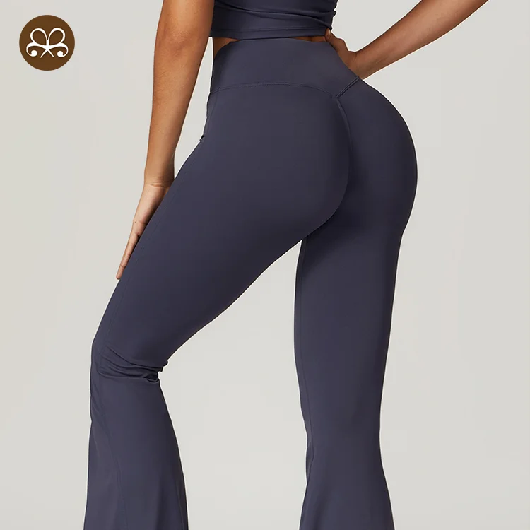 YISHENHON High Quality Gym Yoga Flare Leggings Hot Selling High-Waisted Wide Leg Pants for Women Solid Casual Sport Running