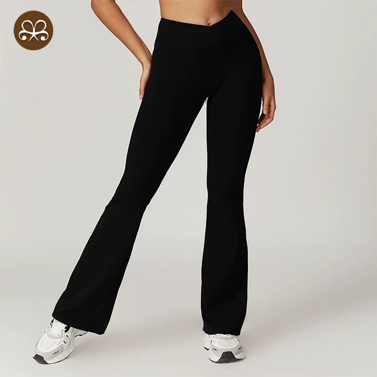 Ready to Ship Gym Women's V Waist Flared Leggings Quick Dry Fitness Eco-Friendly Recycled Workout Yoga Pants