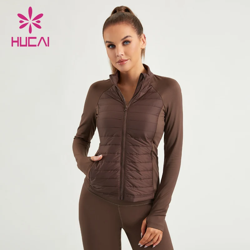 HUCAI Custom Sportswear Full Zip up Slim Fit Quilting Seam Spliced Cotton Warm Workout Gym Top Running Outdoor Jacket for Women