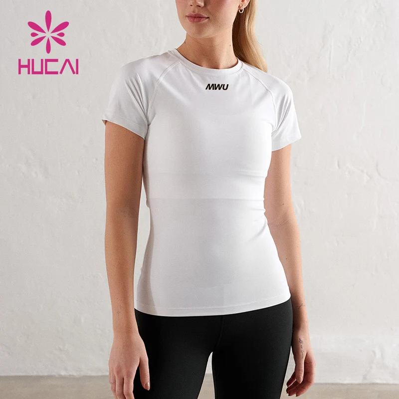 HUCAI Custom Spandex Dry Fit White Basic Super Soft Breathable Sports Tee Yoga Top Long Sleeve Gym t Shirt for Women
