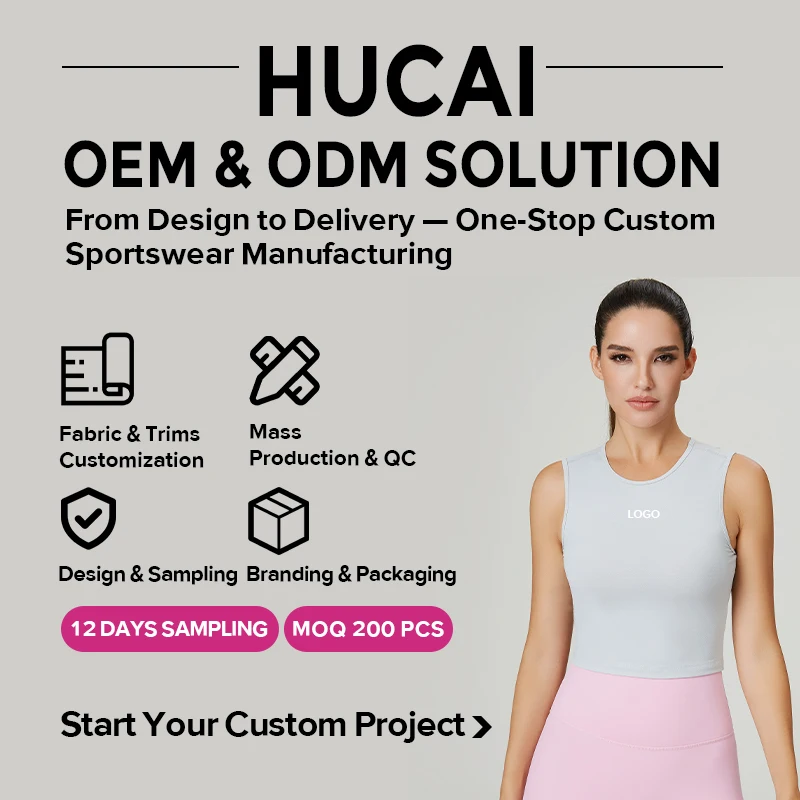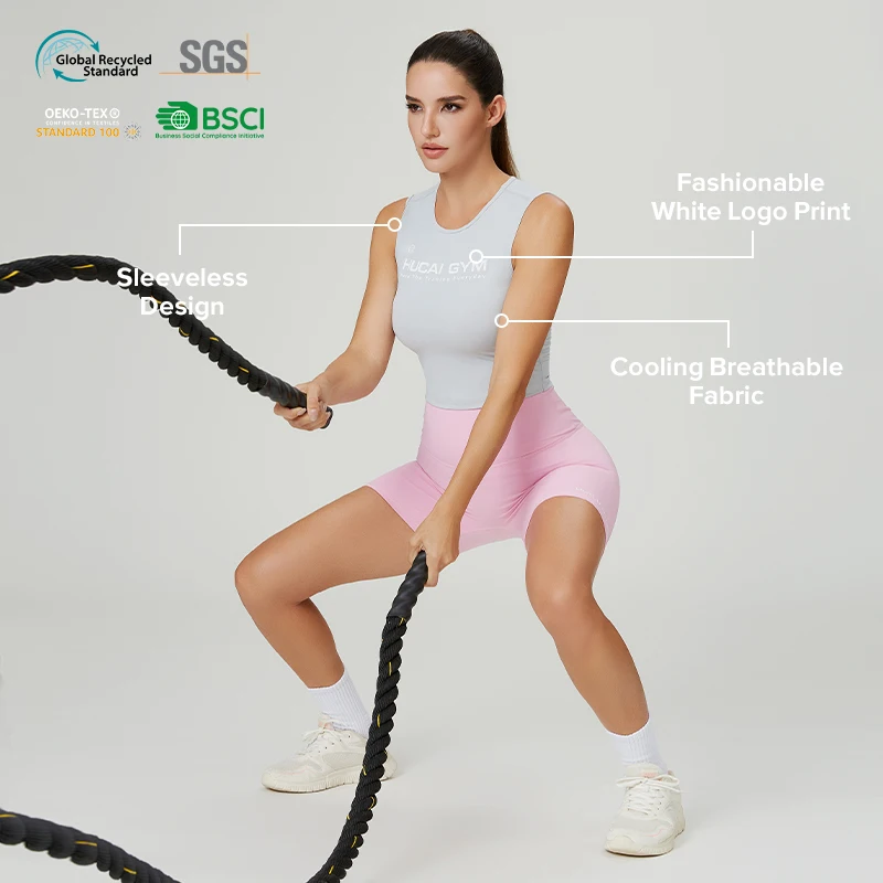 HUCAI Custom logo 87%nylon 13%spandex Cooling Breathable Fabric High Quality Sleeveless Yoga Tank Top Women