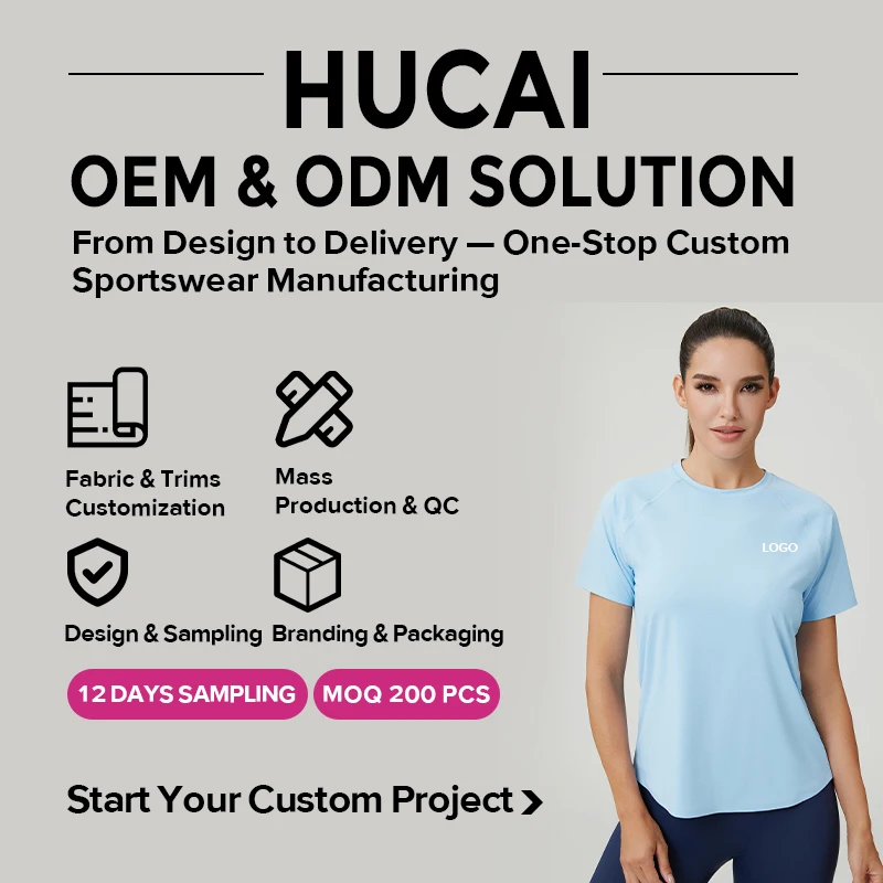 HUCAI Custom 87%nylon 13%spandex Cooling Breathable Fabric 3D Printed Raglan Sleeve Stretch Regular Fit Yoga Fitness t Shirt