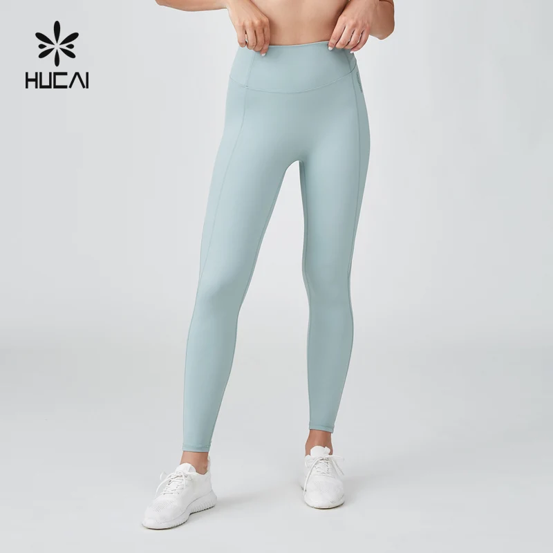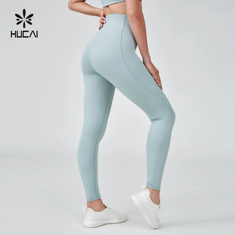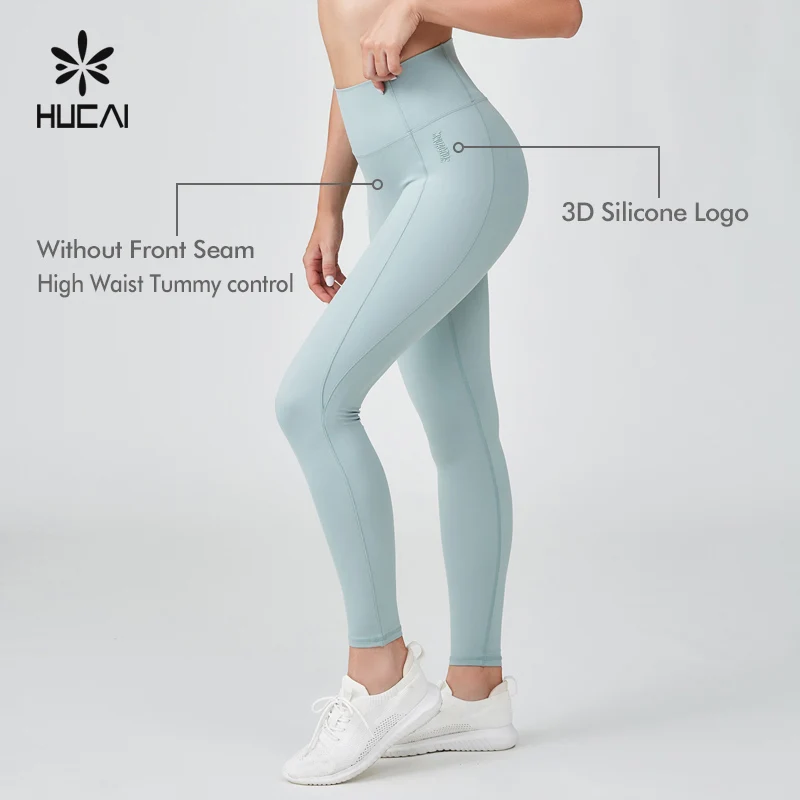 HUCAI Custom Polyester Spandex Fitness Wear High Waist 3D Silicone logo Womens Workout Gym Yoga Pants Leggings for Women