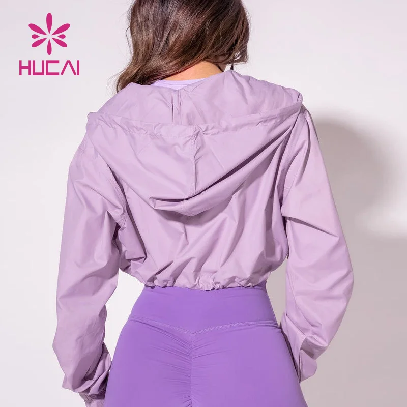 HUCAI Custom logo Women Sportswear Cinch-able Hem Lightweight Full Zip Cropped Windbreaker Oversized Crop Jackets Women