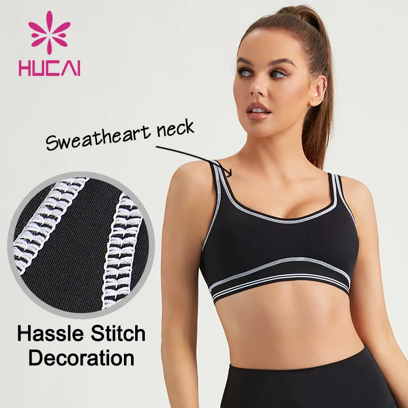 HUCAI Custom logo Contrast Color Stitching U Back Sweatheart Neck Training Yoga Sports Bra for Women