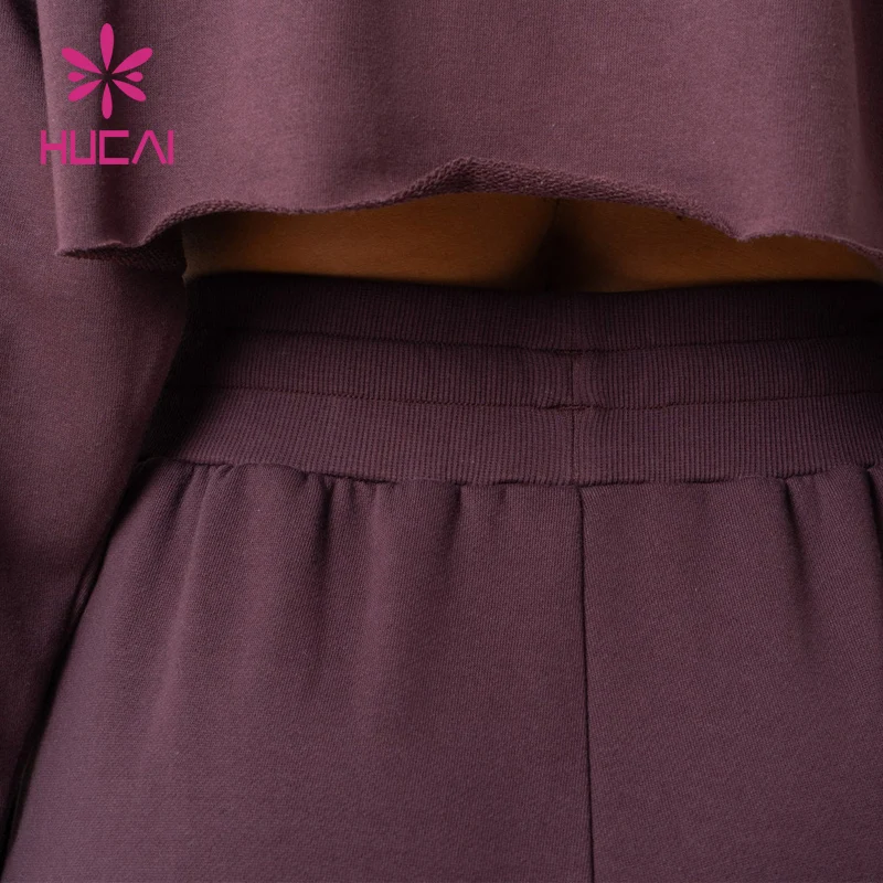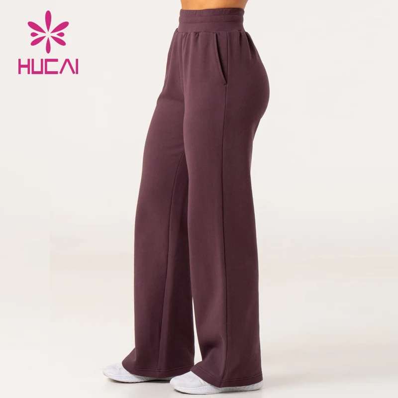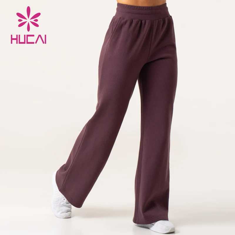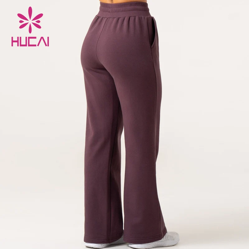 Hucai Custom Women Cotton Jogger High Quality Elastic Waistband Track Pants Wide Leg Casual Gym Sweatpants