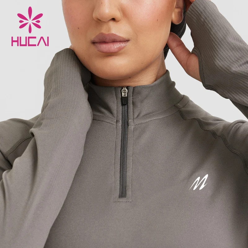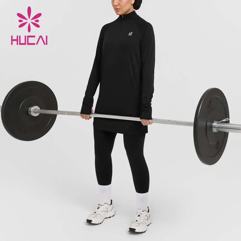 HUCAI Custom logo Womens Longline Long Sleeves Loose Quarter Zip Modest Activewear Sports Islamic Gym Wear Workout Top