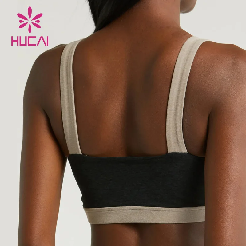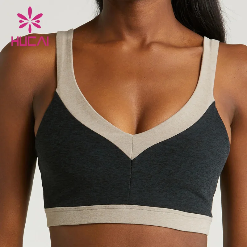 HUCAI Custom logo New Gym Top Fitness Color Contrast Stitching Topline Open Back v Neck Yoga Sports Bra for Women