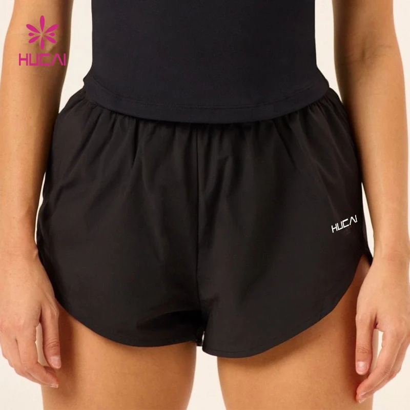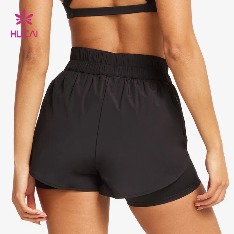 HUCAI Custom Sportswear Breathable Drawstring Split Hem Dry Fit Double Layer 2 In1 Workout Gym Running Shorts Women