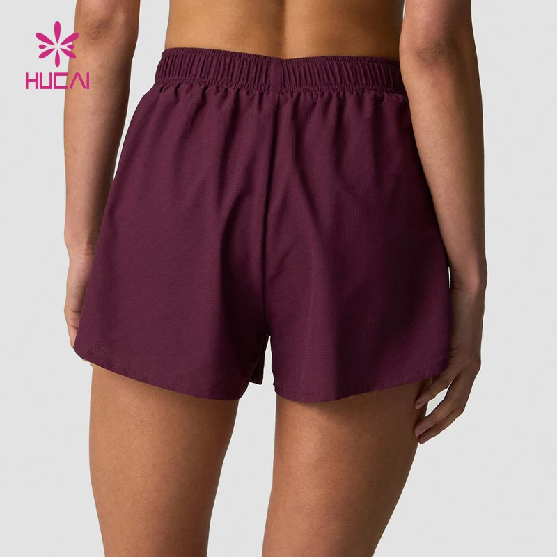 HUCAI Custom Sportswear Breathable Drawstring Lightweight Dry Fit Double Layer 2 In1 Workout Gym Running Shorts Women