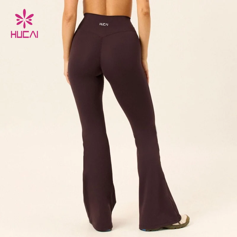 HUCAI Custom logo high quality Nylon Spandex Soft Knitted High Quality High Waist Yoga Pants Flare Leggings Women