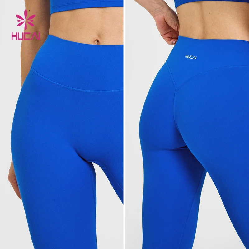 HUCAI Custom Polyester Spandex Butt Lifting V Shape Silicone High Waist Fitness Gym Yoga Pants Leggings for Women High Quality