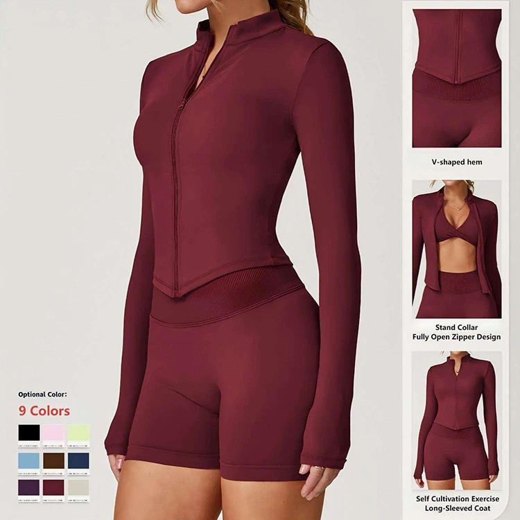 Hot Selling Women Bare Skin Yoga Jacket Breathable Quick Dry Stand Collar Zipper Long Sleeve Workout Gym Activewear