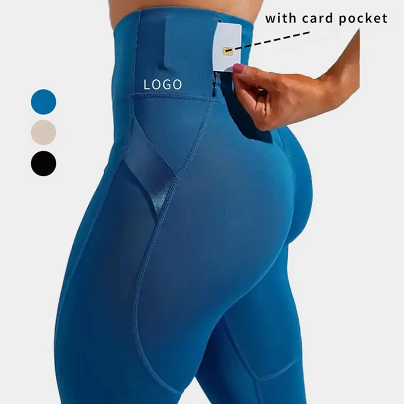 YISHENHON Custom Butt Lift Yoga Leggings for Women High Waist Sport Pants with Pockets Running Fitness Workout Gym Activewear