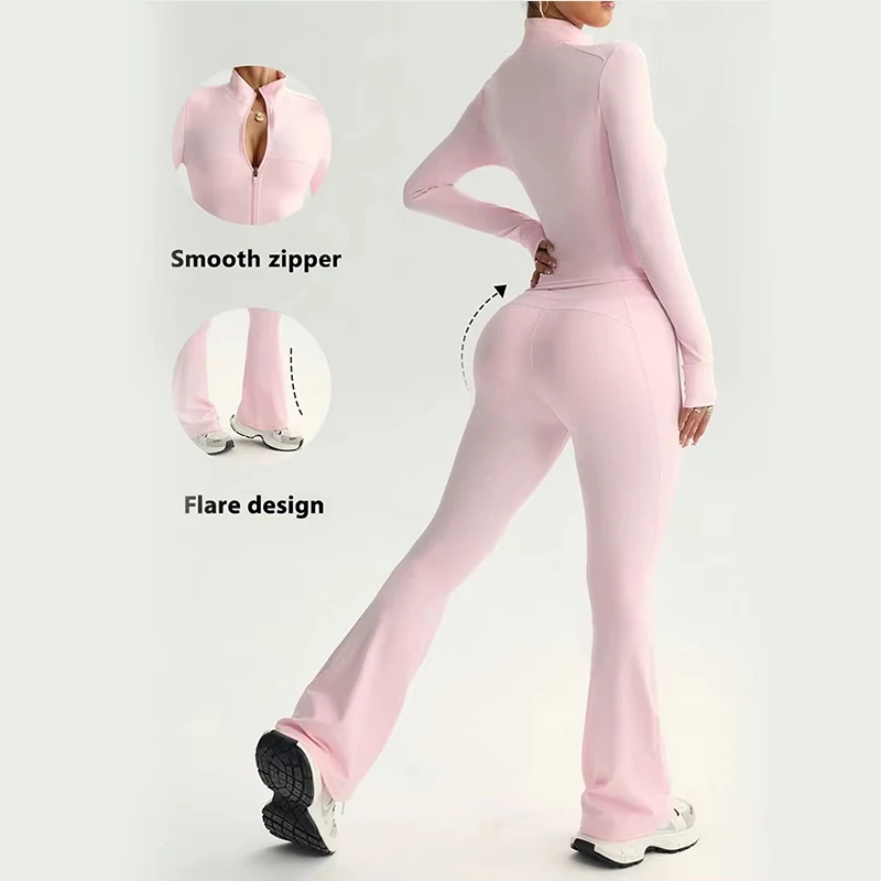 2026 Hot Sale Nylon Spandex Women Long Sleeve Zipper Jacket Push up Leggings Quick Dry Yoga Set for Gym Fitness Workout Wear