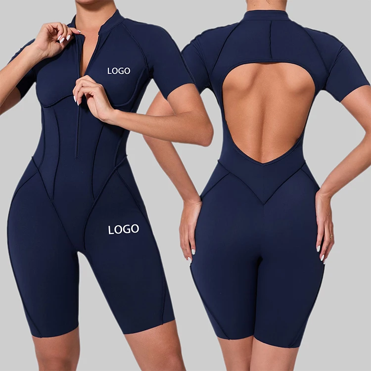 2026 Hot Sale Nylon Spandex Women Backless Zipper Front Body Shaping Quick Dry Yoga Bodysuit for Gym Fitness Workout Wear