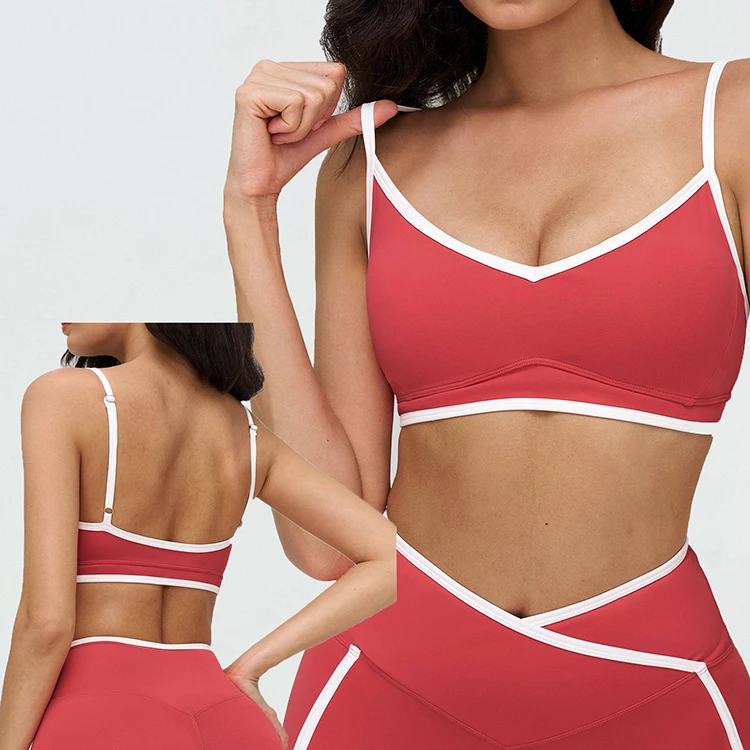 Fashionable Contrast Color Sports Bra Crisscross Back Stretchy Soft Compression Quick Dry Yoga Pilates Gym Workout Active Top