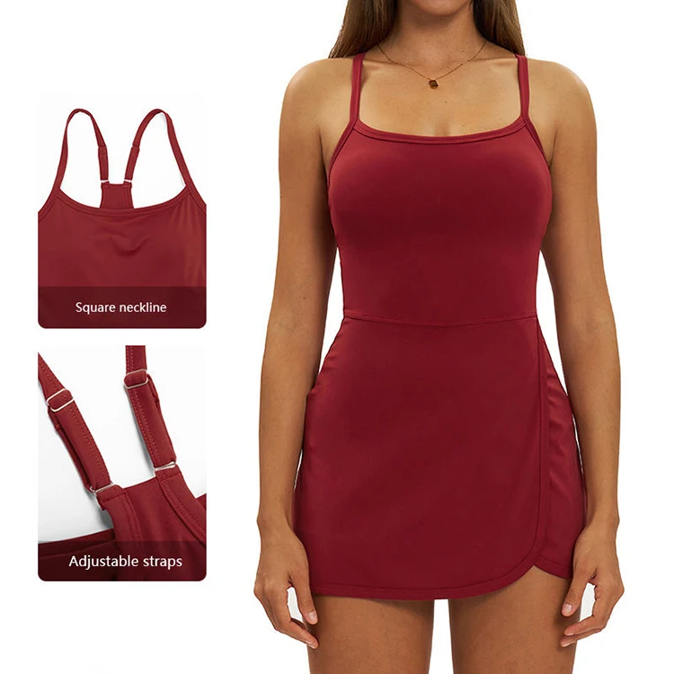 Custom Logo Adjustable Cross Back Tennis Dress Quick Dry Breathable Built in Shorts High Quality Sleeveless Athletic Golf Wear