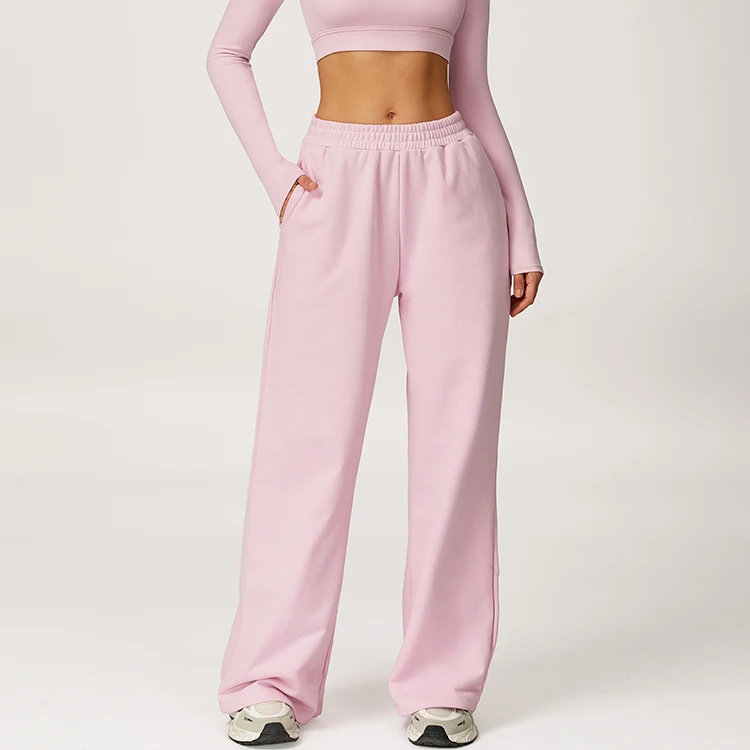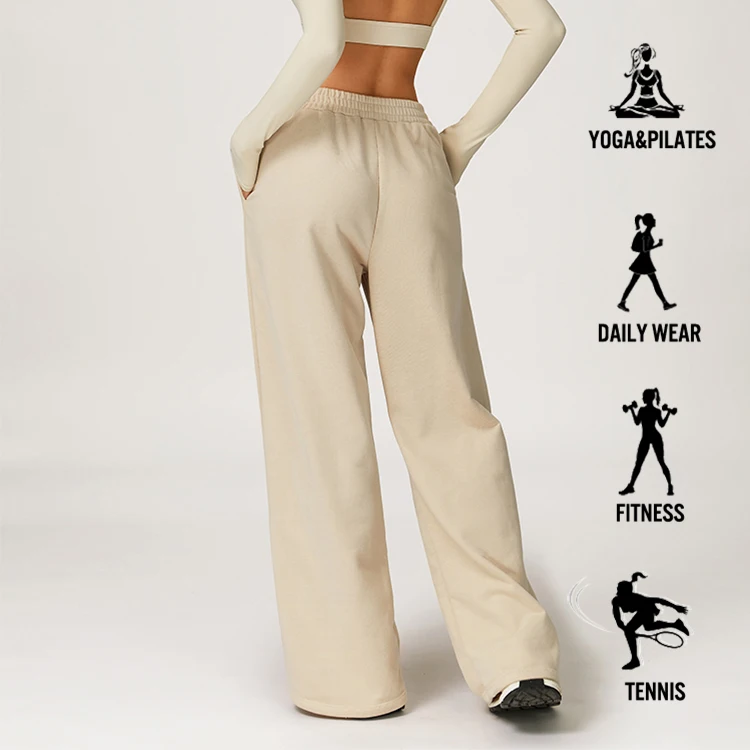 Women's Loose Straight Leg Sweatpants High Waist Warm Sports Pants With Side Pockets Casual Wear Spring Autumn Leggings