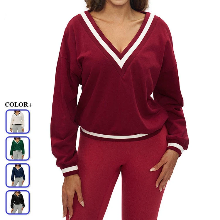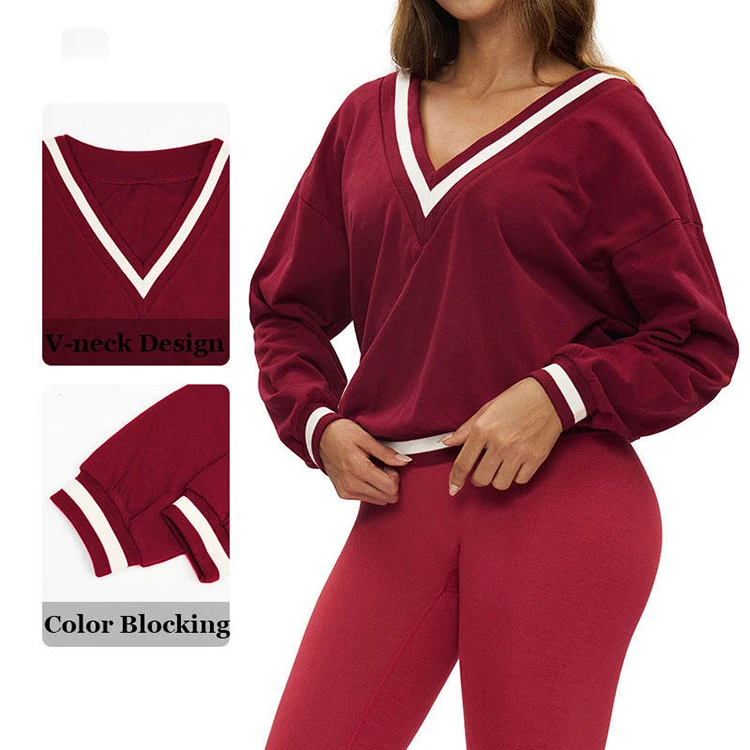 Premium Polyester Cotton V Neck Loose Sports Sweatshirt Women Long Sleeve Casual Outdoor Running Training Yoga Top