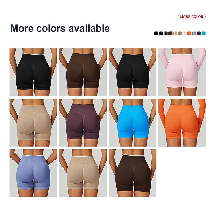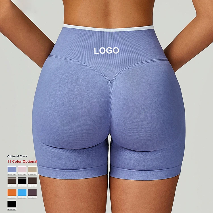 Peach Hip Lifting Yoga Shorts Seamless High Waist Quick Dry Contrast Hem Athletic Workout Gym Running Plus Size Wear