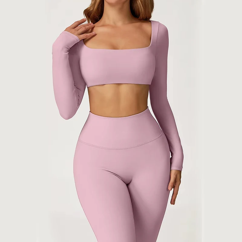 2026 Hot Sale Nylon Spandex Women Naked Feeling Long Sleeve Scrunch Butt Quick Dry Yoga Set for Gym Pilates Fitness Wear