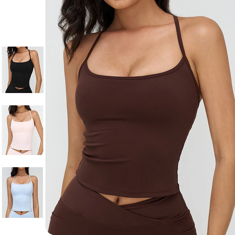 Hot Selling Hollow Back Double Strap Yoga Vest Removable Pad Quick Dry Activewear for Women Running Fitness Gym Workout Tops