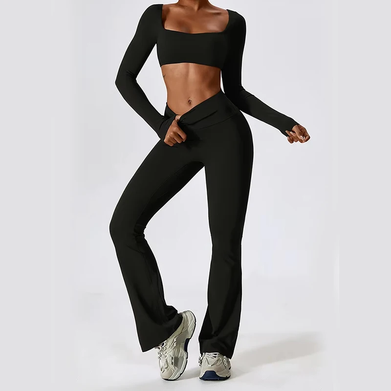 YISHENHON High Quality Gym Yoga Flare Leggings Hot Selling High-Waisted Wide Leg Pants for Women Solid Casual Sport Running