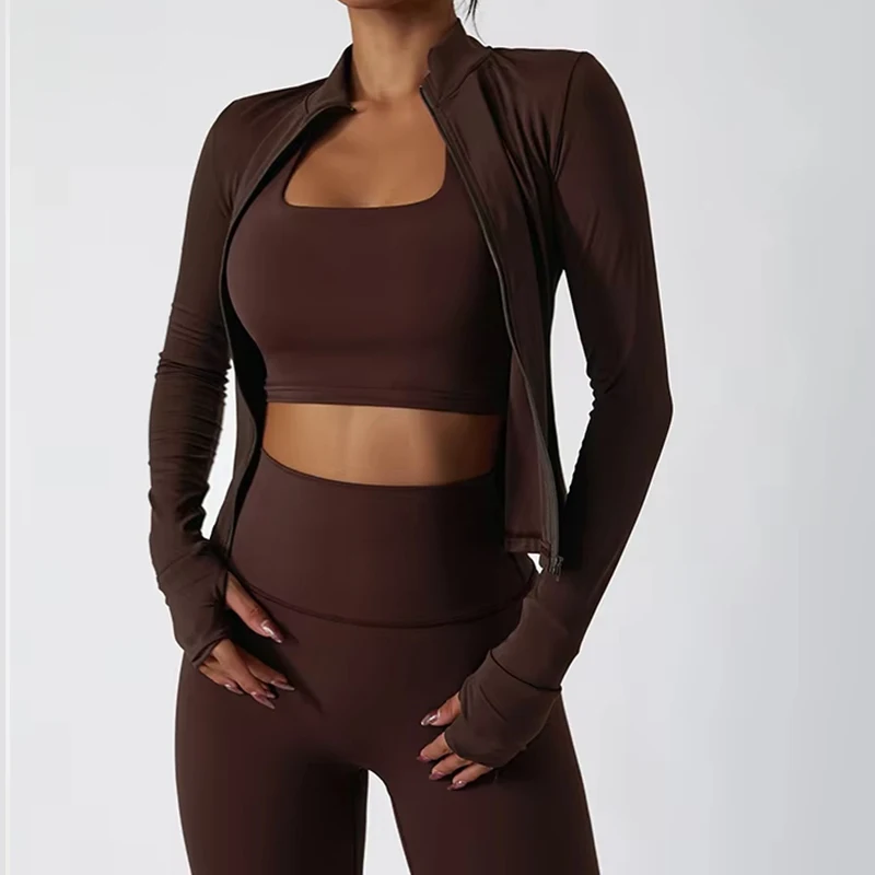 YISHENHON Custom Women's Yoga Jackets Thumb Hole Zipper Lightweight Fitness Sports Jackets Workout Yoga Clothing With Pocket