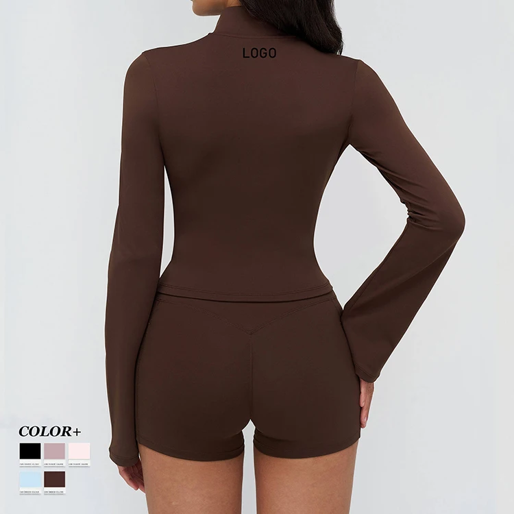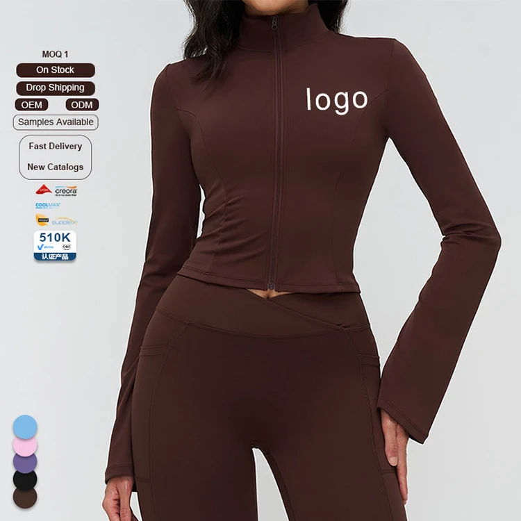 YISHENHON Custom Women's Yoga Jackets Thumb Hole Zipper Lightweight Fitness Sports Jackets Workout Yoga Clothing With Pocket