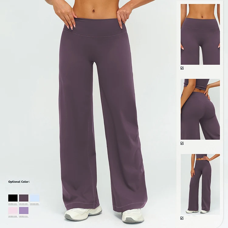 YISHENHON High Quality Gym Yoga Flare Leggings Hot Selling High-Waisted Wide Leg Pants for Women Solid Casual Sport Running