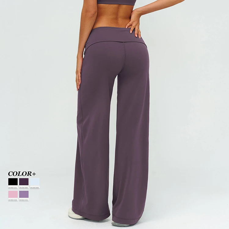 New Arrivals High Waist Fold Over Brushed Yoga Pants Women Breathable Quick Dry Wide Leg Tummy Control Butt Lifting Activewear