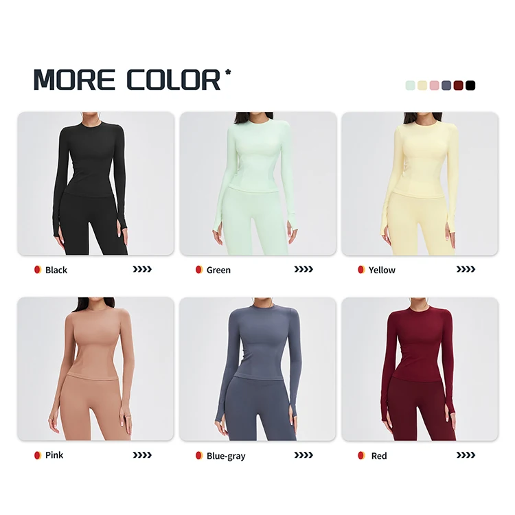 High Quality Compression Yoga Top Crew Neck Thumb Hole Long Sleeve Breathable Slim Fit Gym Fitness Training Sportswear
