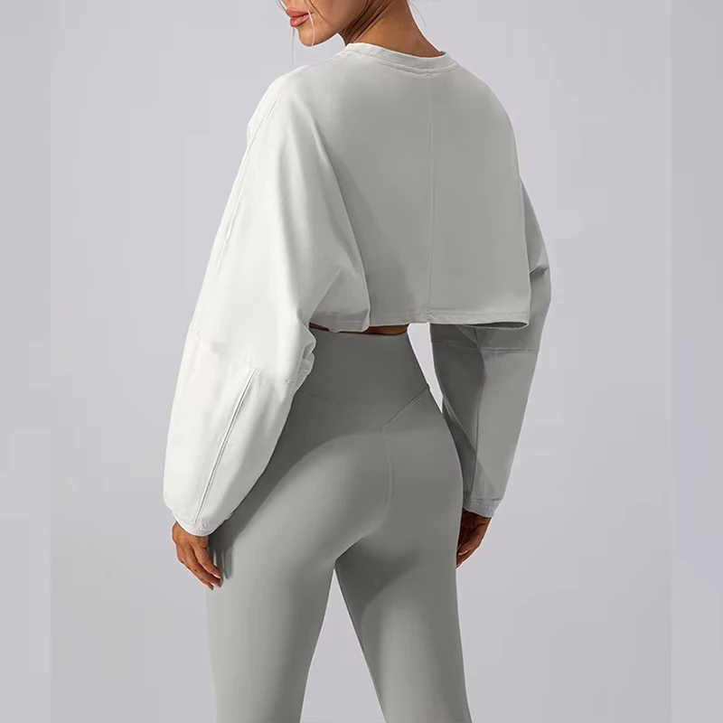 Custom Logo Crop Top Women Batwing Sleeve Anti Windproof Cross Border Wholesale Gym Sportswear Long Sleeve Yoga Top