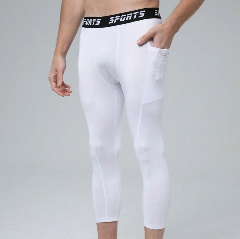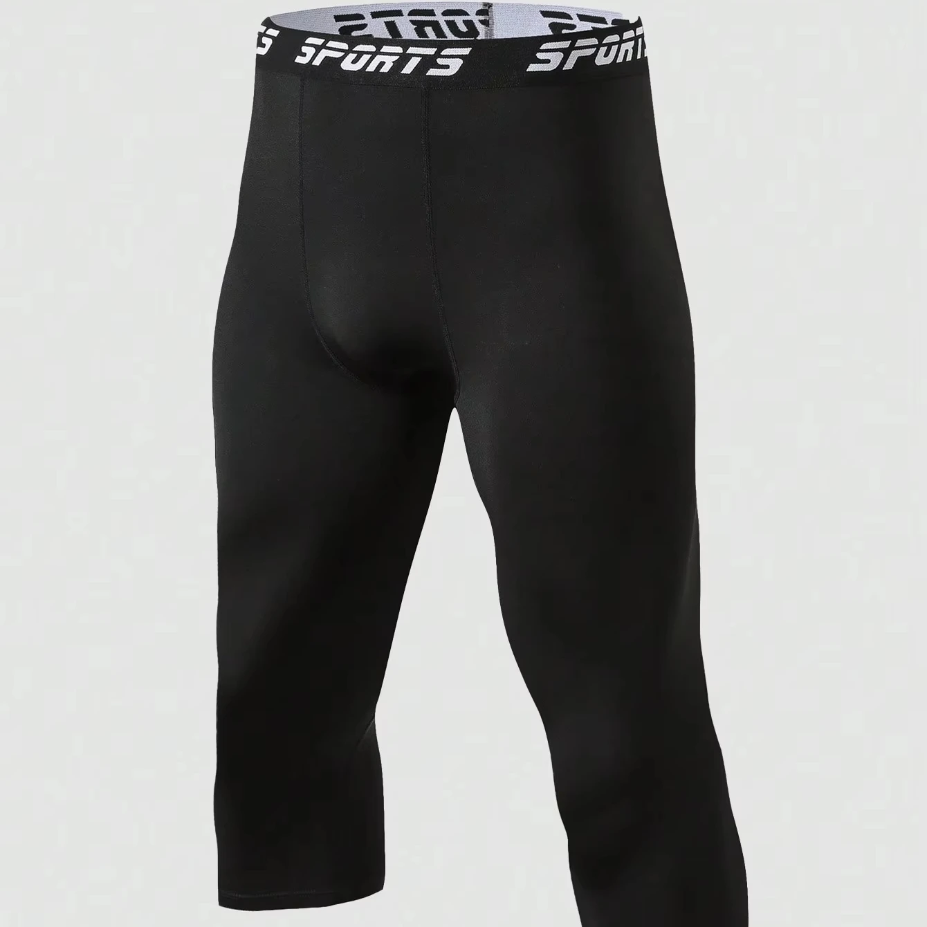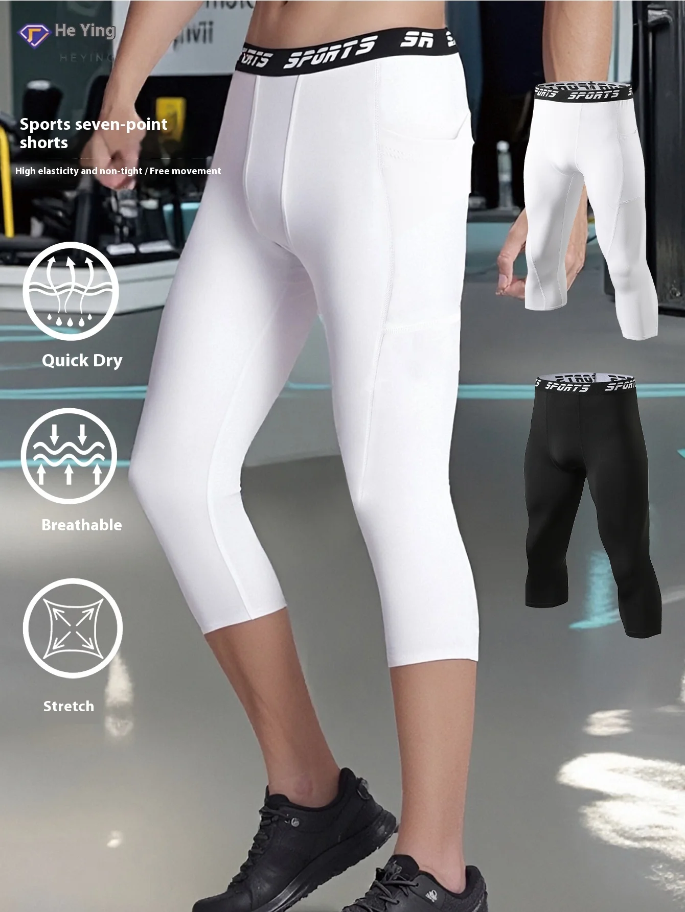 Men's High Elastic Summer Fitness Sports Capri Pants Quick Dry Breathable Compression Leggings Solid Running Basketball Shorts