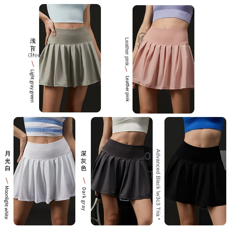 Lulu Sports Women's Anti-Running Tennis Sets Popular Cyber Fitness Pleated Skirt Breathable Pocket Short Skirt Pants for Dance