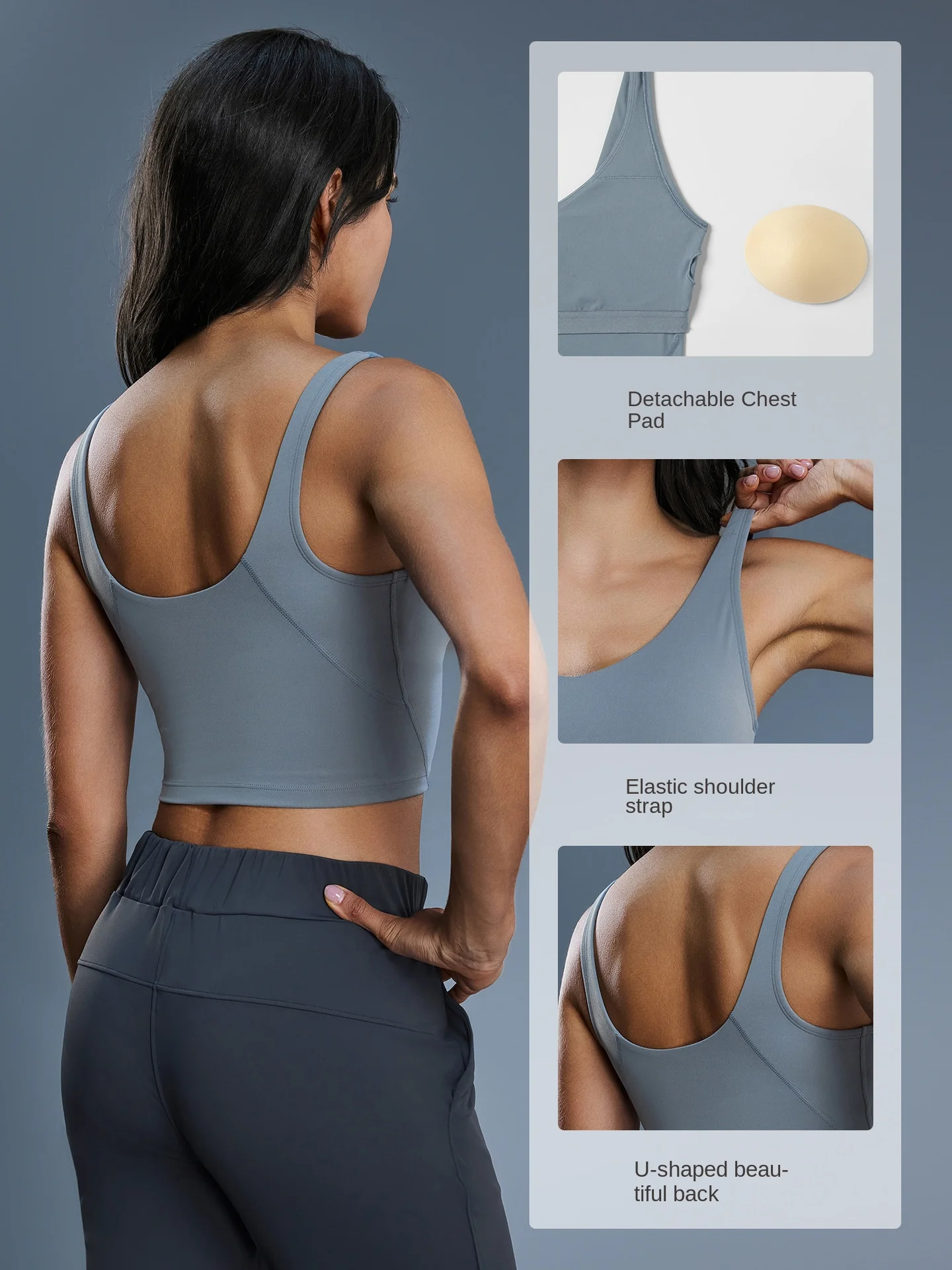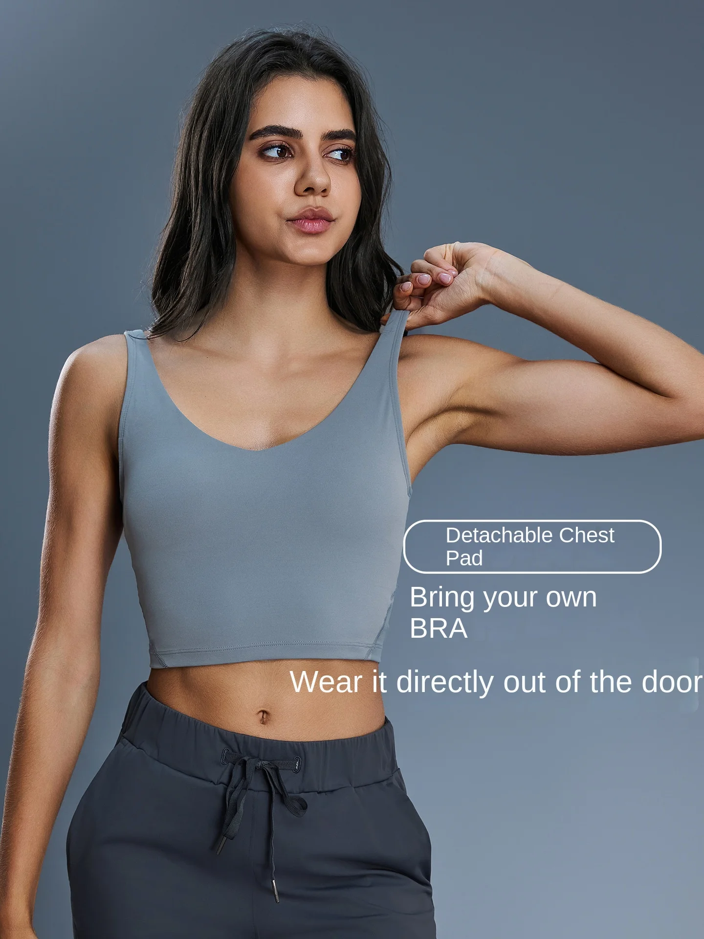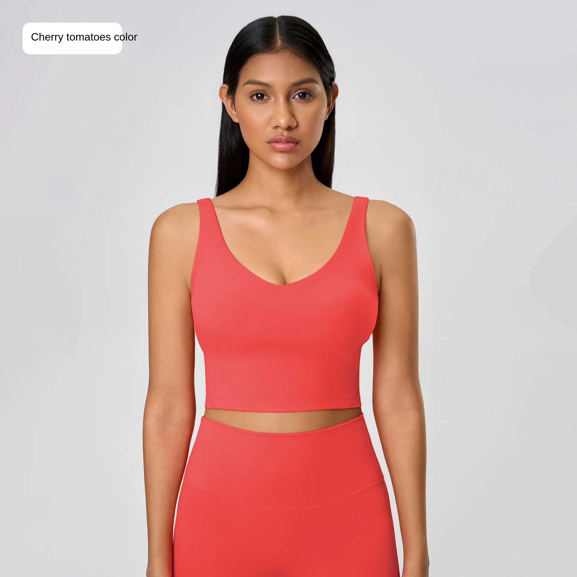 Cross-border New Beauty Back Sports Underwear Women's Yoga Running Bra Tank Top Breathable for Solid V-neck Nine Quarter