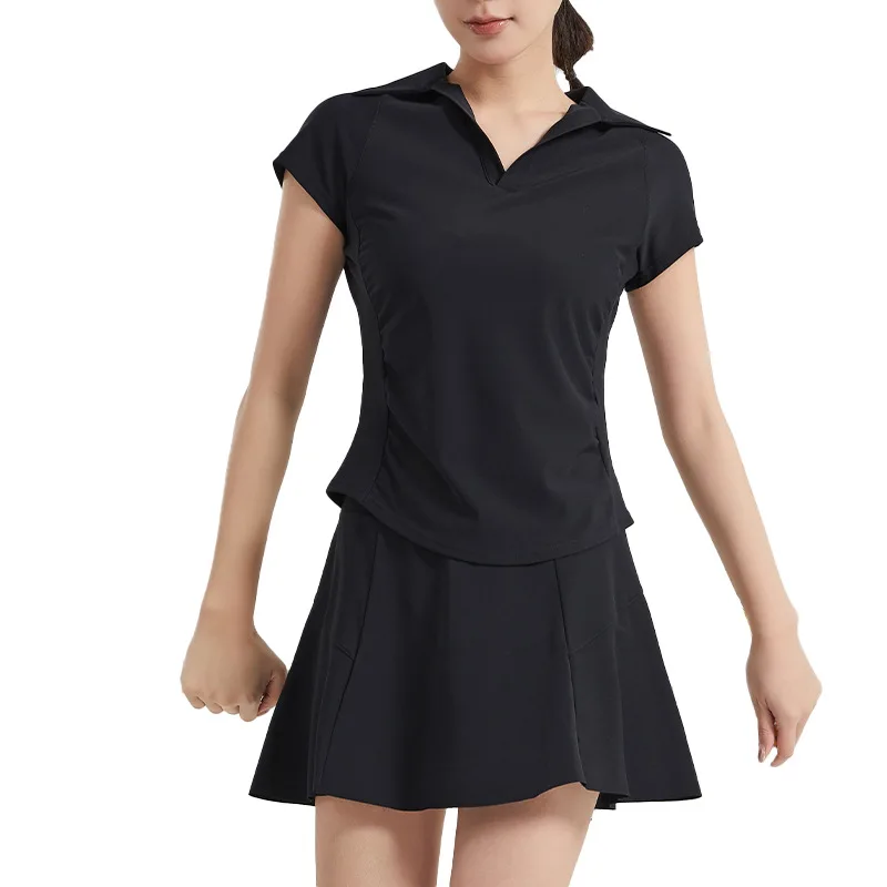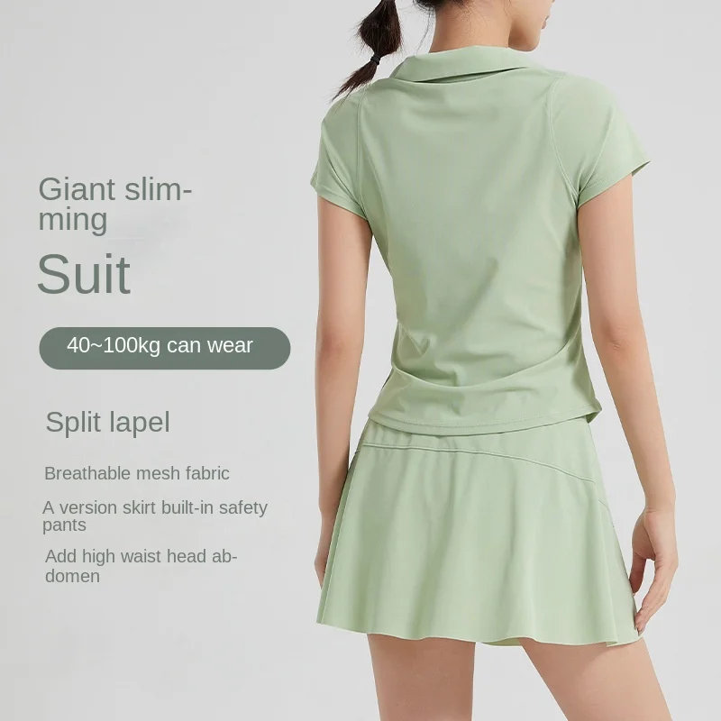 Large Size New Women's V-neck Short-sleeved Breathable Quick-drying Moisture-wicking Tennis Tops & Skirt Set