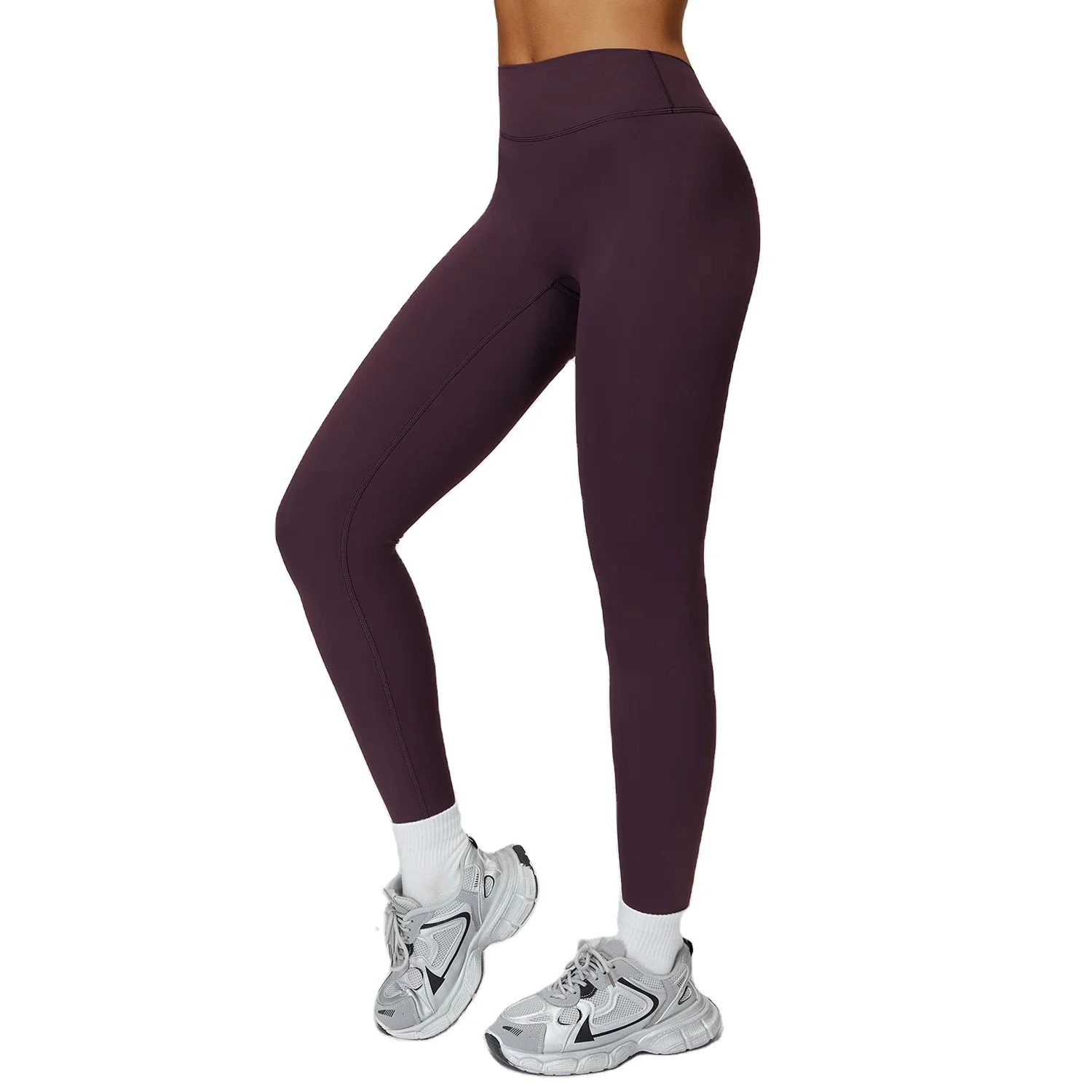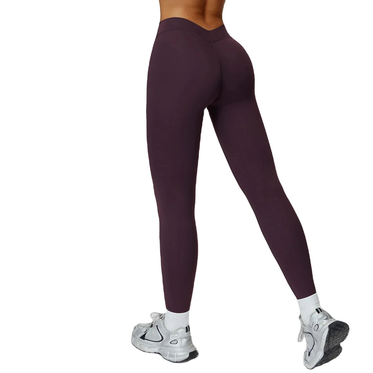 Cross-Border Brushed Yoga Pants High Waist Tight V-Shaped Back Tummy Control Color Blocking Polyester Full Length Plus Size