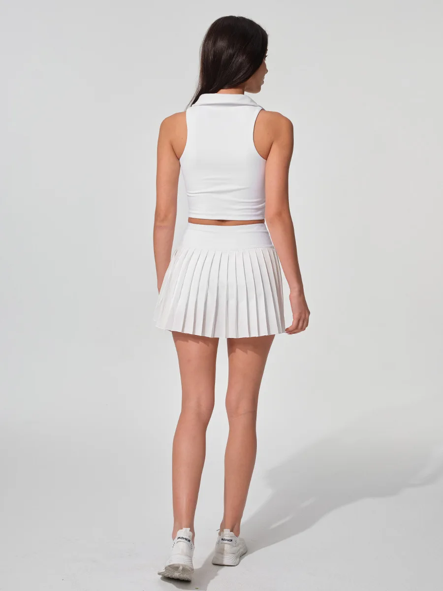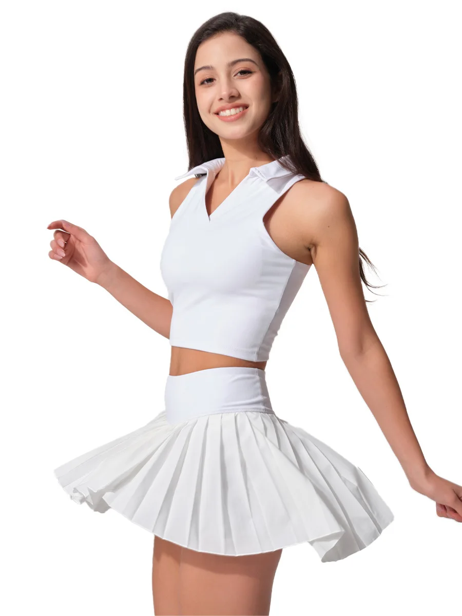 Summer Outdoor Shirt Sports Vest Fitness Anti-walking Breathable Quick-dry Pleated Tennis Skirt Yoga Women's Suit Front Anti-UV