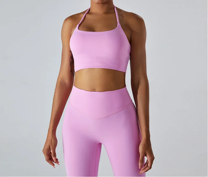 YISHENHON OEM/ODM Custom Workout Halter Scrunch Sports Bra Women Girls Stretchy Compression Quick Dry Padded Sexy Pants Polybag