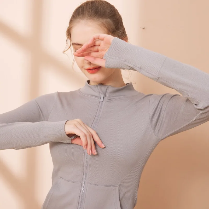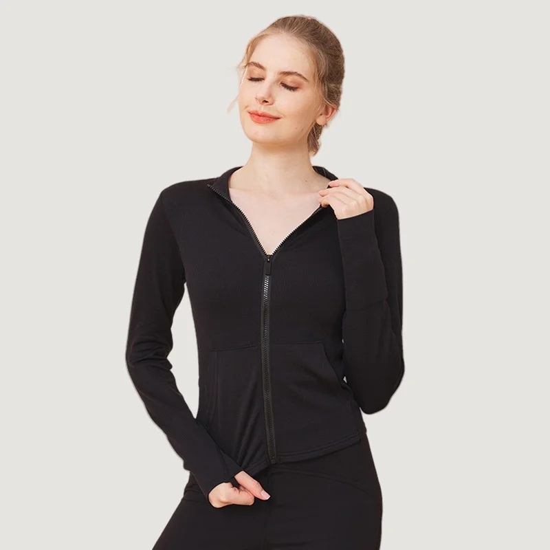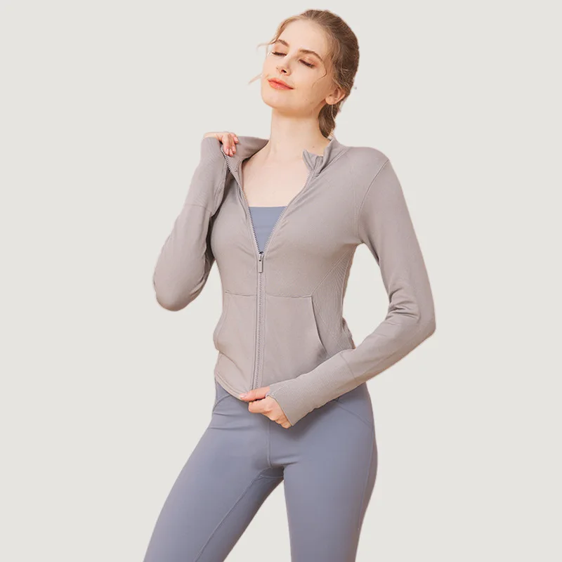 YISHENHON Custom Women's Yoga Jackets Thumb Hole Zipper Lightweight Fitness Sports Jackets Workout Yoga Clothing With Pocket