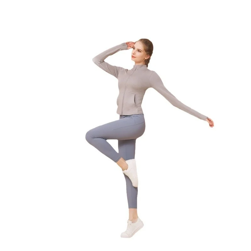 Women's Autumn Winter Fitness Sports Coat Breathable Long-Sleeved Yoga Wear Vertical Collar Tight Seamless Outdoor Sports Set