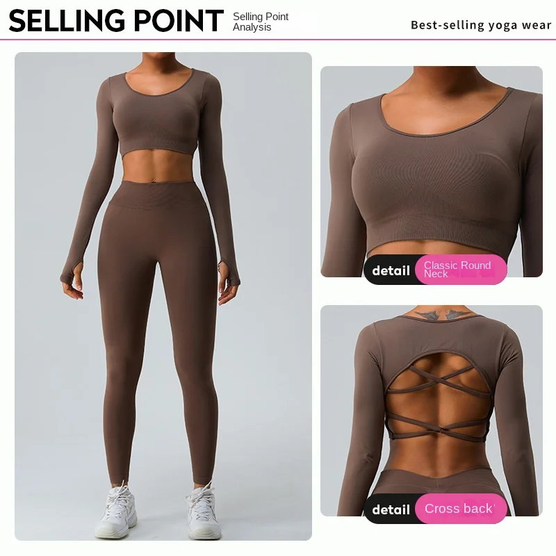 Women's Lightweight Long-Sleeved Yoga Top Solid Fitness Clothes Beautiful Sexy Back Plus Size Breathable Cross-Border for