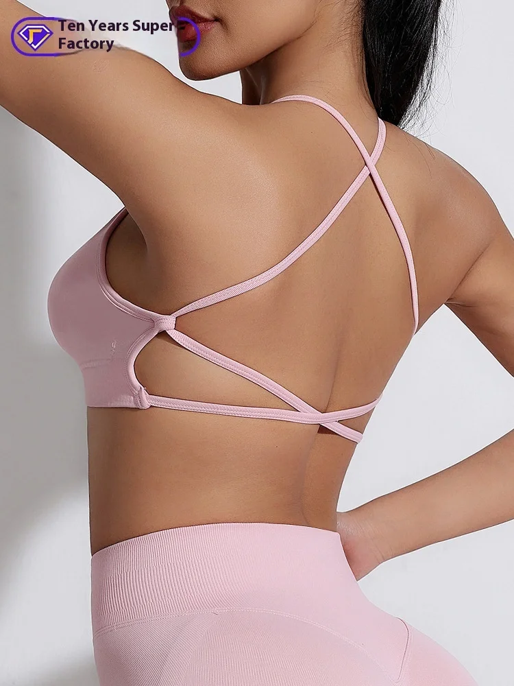 Women's Fitness Yoga Seamless Sports Bra Beautiful Back Strap Cross Outer Wear Shockproof Running for XL Breathable Adjustable